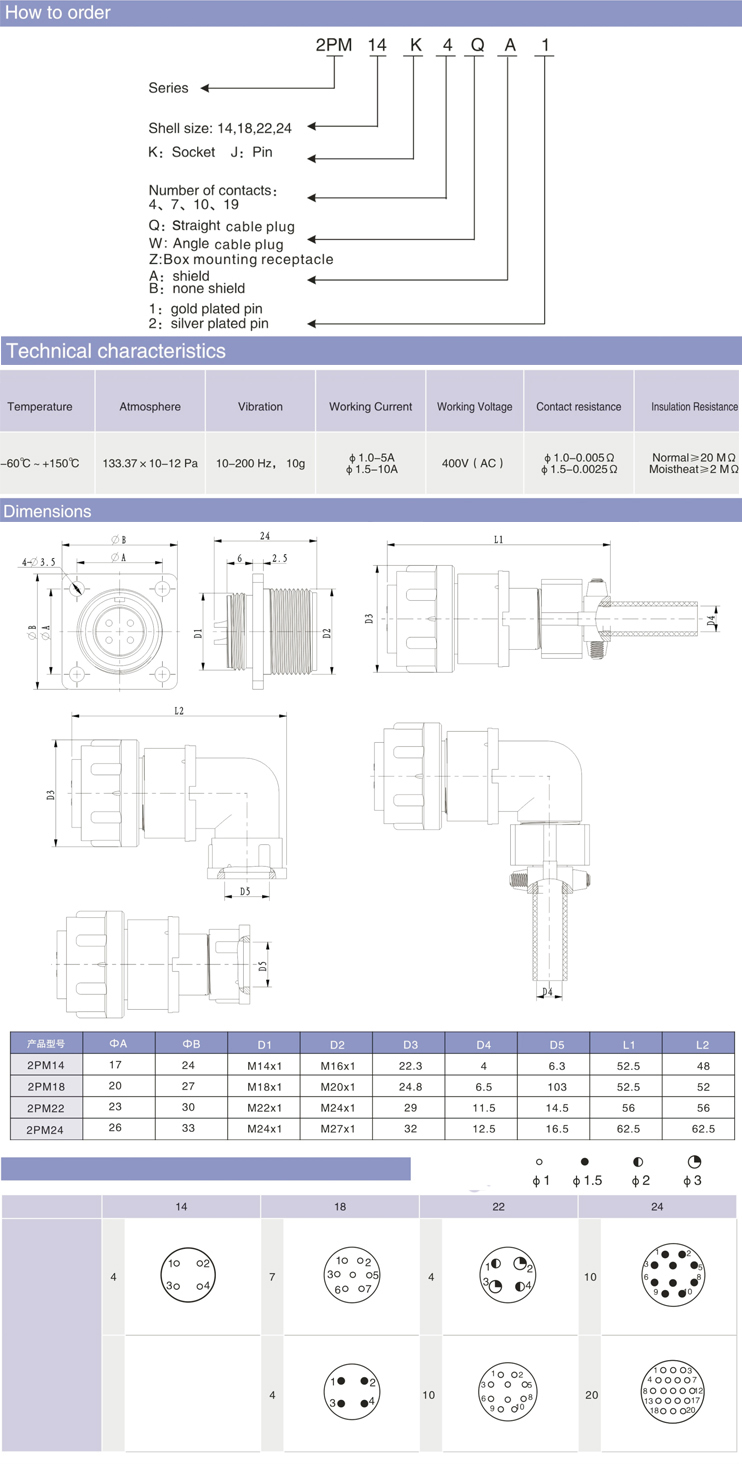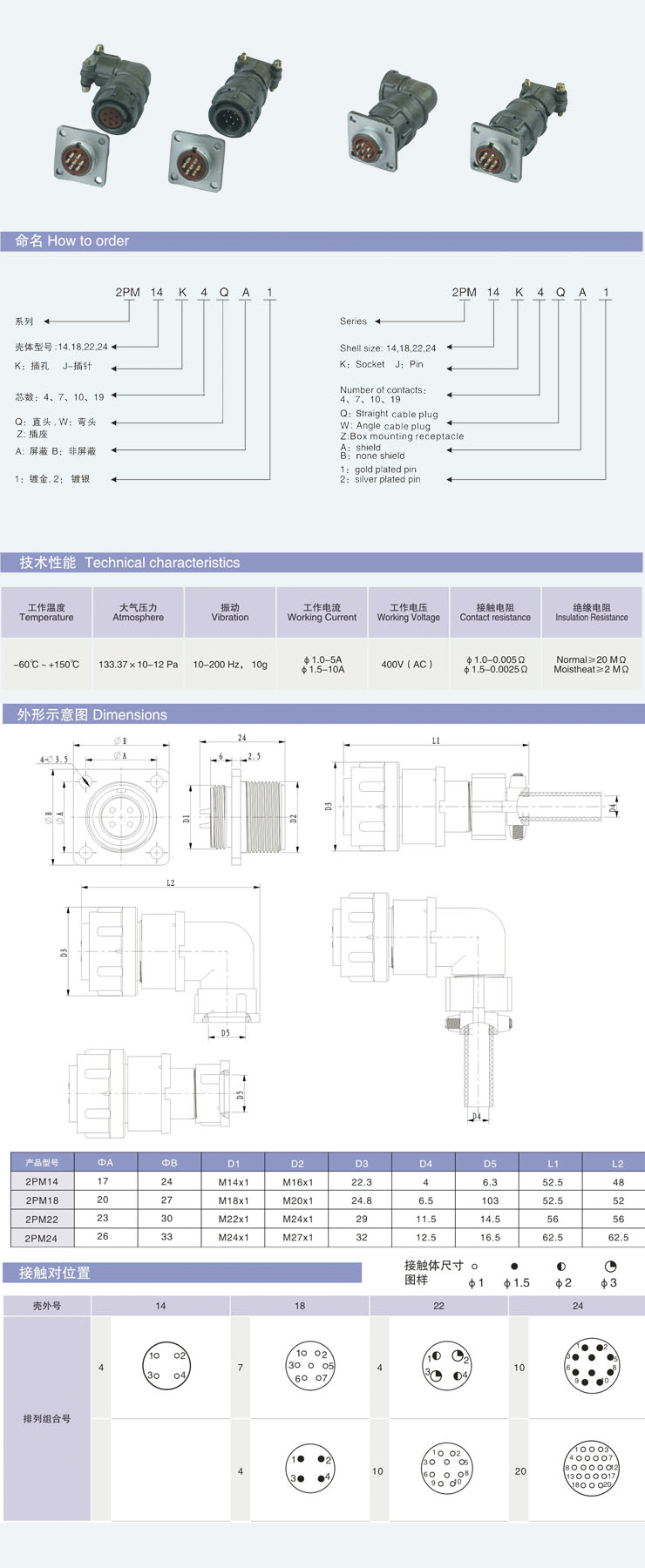 2PM series connectors mainly adopt Russian connector technology. They are widely used for electrical connections and signal transmission between devices. Its unique shape and structural design can make up for the shortcomings of many other similar connectors in use. For example, the unique design of the housing threading hole and the tail screw makes the use more convenient and scientific. The structural design of the internal insulator and pin jack also enhances its unique stability and reliability. This series of connectors also has certain waterproof properties, which can prevent outdoor rain and other phenomena. Its special structure and performance It has won widespread recognition from the market.