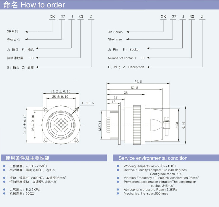 XK serles bayonet connectors easy to connect and separate.the connectors widelyused in airline,military,civil work in high tempreture condition,military equipments,missile launcher and cold air ducts